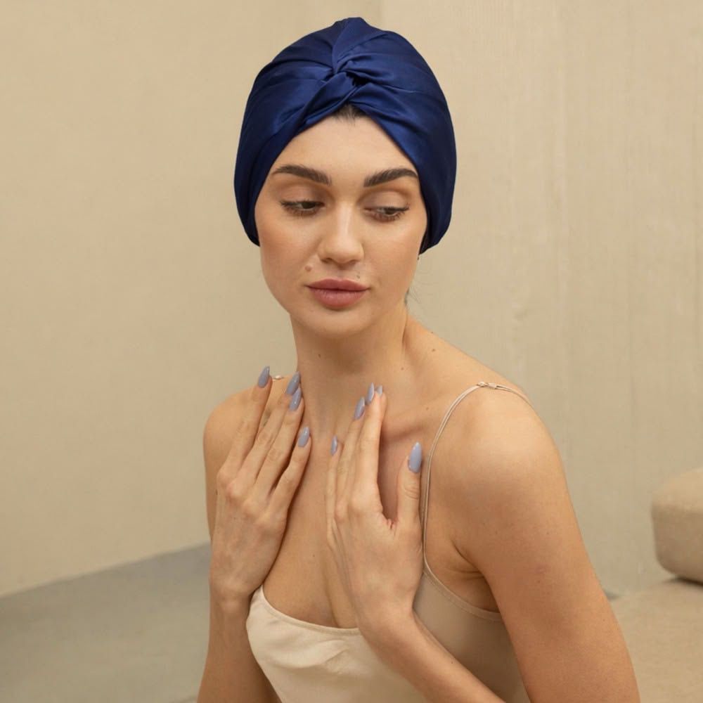 Contrairement au satin synthétique qui peut étouffer le cuir chevelu, notre bonnet est conçu en soie de mûrier 100 % naturelle sur deux couches. Cette double épaisseur de soie pure laisse respirer vos cheveux tout en scellant l'hydratation, offrant une barrière protectrice bien plus efficace et luxueuse.