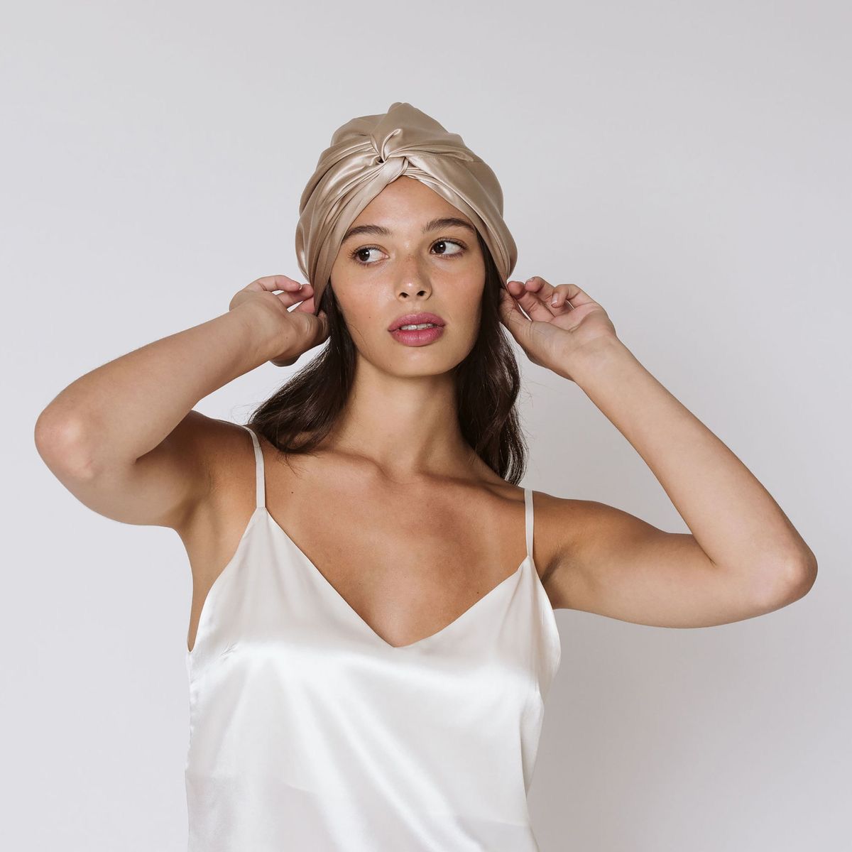Contrairement au satin synthétique, notre double couche de soie de mûrier 100% naturelle préserve l'hydratation et élimine les frisottis pour un réveil sans effort et des cheveux rayonnants de santé chaque matin.